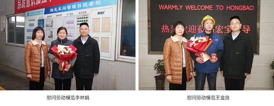 集團黨委書記丁亞龍、工會主席肖麗琴向省勞動模范、慈善楷模朱玉寶先生致以新春問候!朱玉寶表示感謝并祝宏寶全體員工春節快樂!闔家幸福!
